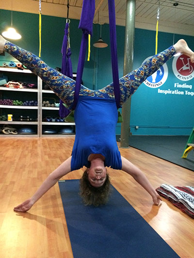 Even after getting nauseous, Margaret (who’d mentioned a problem with motion sickness) enjoyed the hanging sivasana and called the class “an incredible experience.” I agreed.
